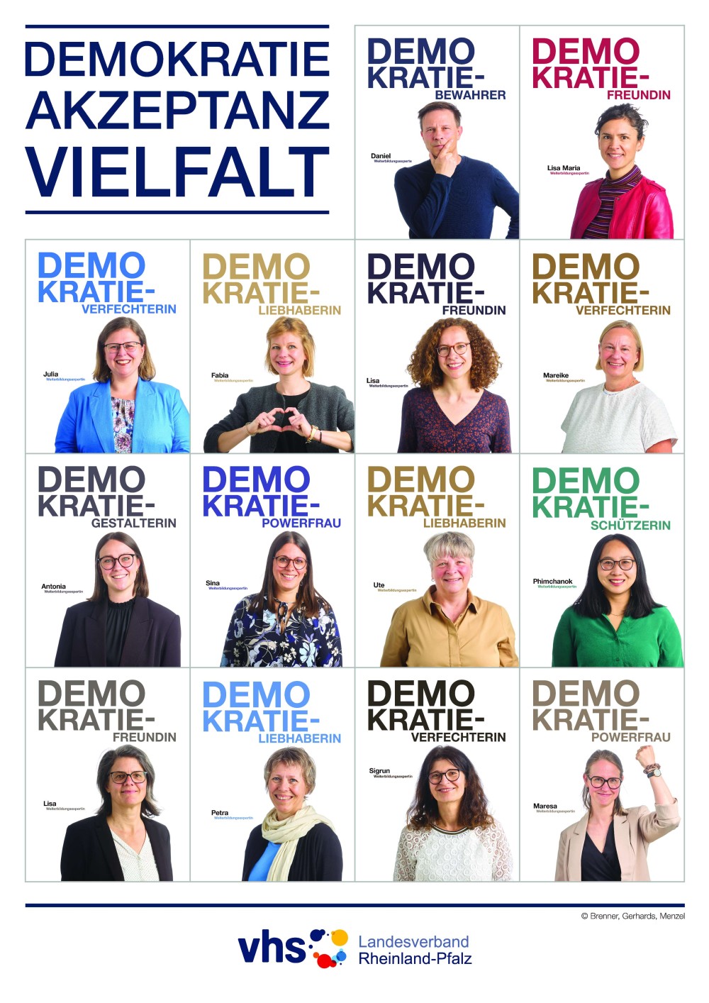 Zahlreiche vhs-Vertreter*innen haben sich anlässlich unserer Mitgliederversammlung in Bitburg an der Fotoaktion "Demokratie - Akzeptenz - Vielfalt" beteiligt und zeigen klare Haltung in einer Zeit, in der demokratische Werte zunehmend unter Druck geraten.